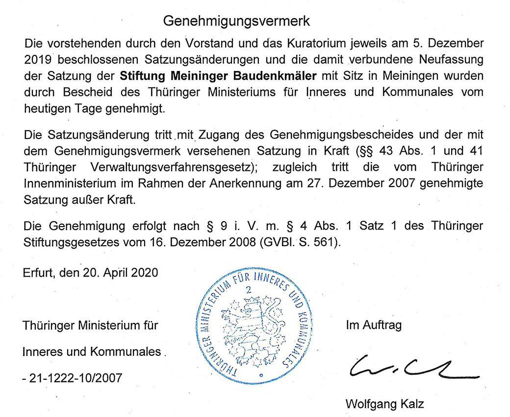 - Die Stiftung führt den Namen „Stiftung Meininger Baudenkmäler“.